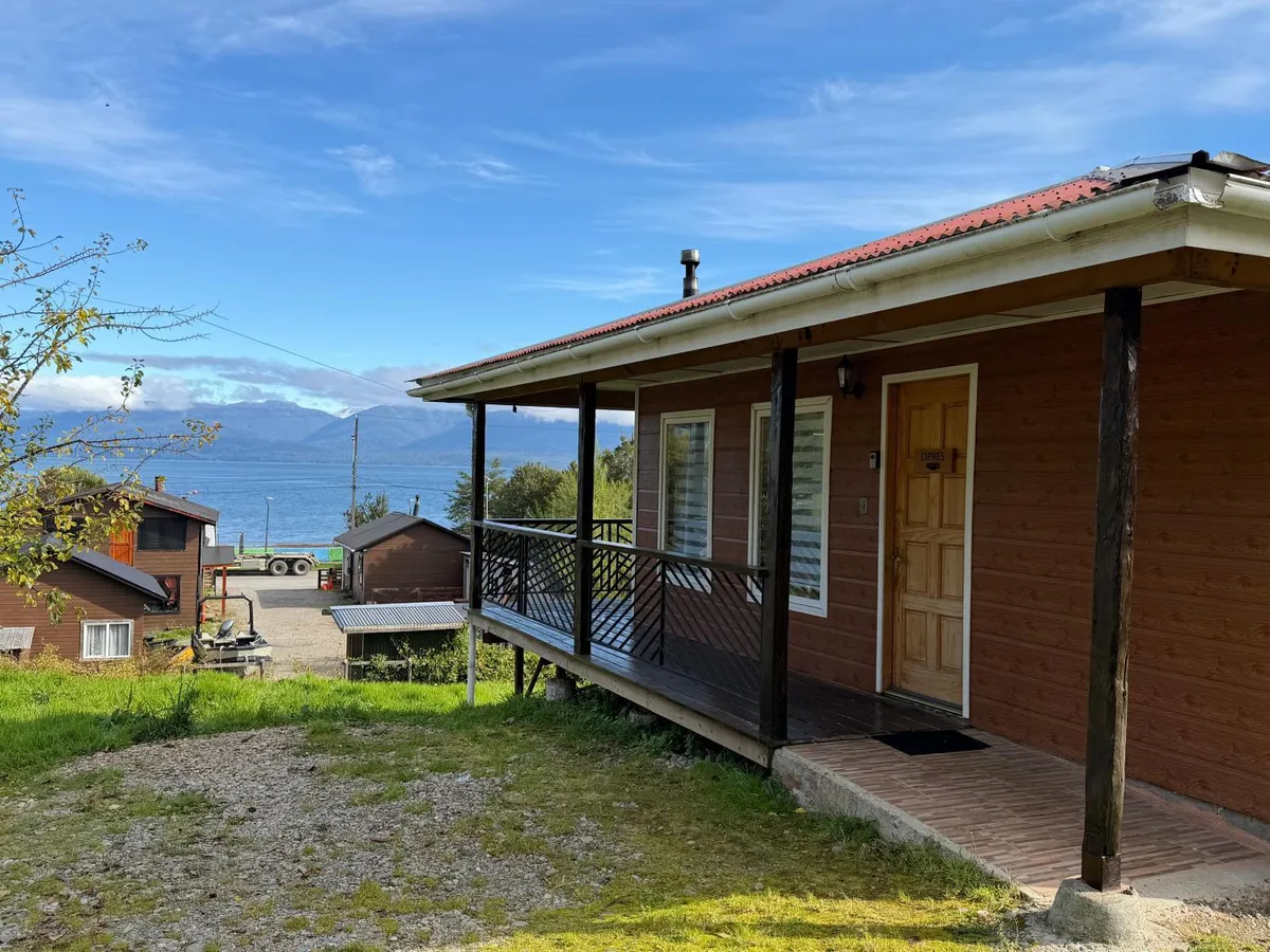 Cabaña de 50 m² en Ethel Dunn 58, Puerto Cisnes — pueblo pesquero en el fiordo de Puyuhuapi, tramo medio de la Carretera Austral. Para 4 personas en 2 dormitorios con balcón con vista al fiordo, jardín amplio y cocina equipada. Base alternativa a Puyuhuapi con menor turismo masivo.