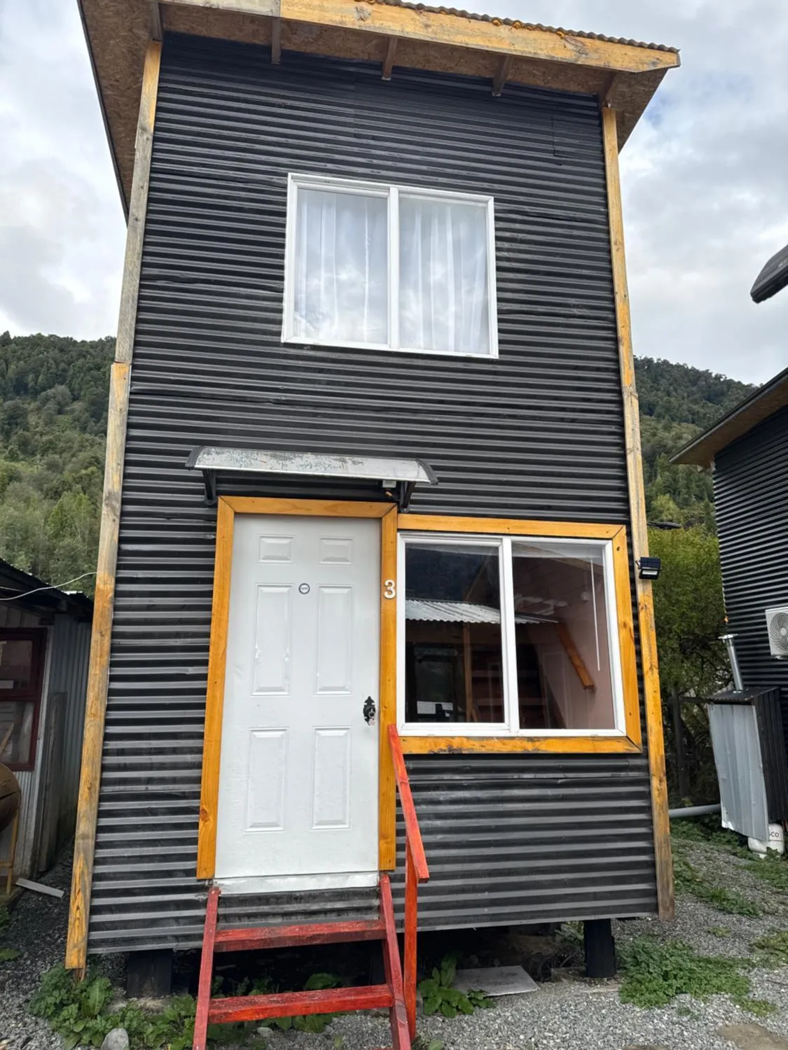 Cabaña 30 m² en Carretera Austral, Puerto Puyuhuapi. 2 personas pet friendly con A/C (como calefacción) y cámaras en estacionamiento. Nota 8,3.
