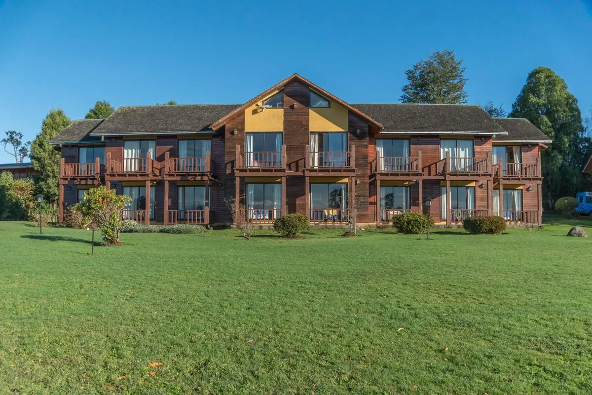 Lo elegimos por el formato aparthotel con cocina equipada + piscina + vista al lago en Frutillar por menos de 90k la noche. Permite estadías largas autosuficientes.
