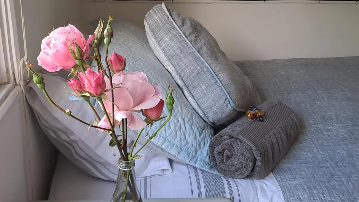 La propiedad tiene jardín privado, WiFi, hervidor eléctrico, secador de pelo y artículos de aseo gratuitos. El formato homestay da acceso a la cocina completa con refrigerador y utensilios — para quienes prefieren no depender de restaurantes.