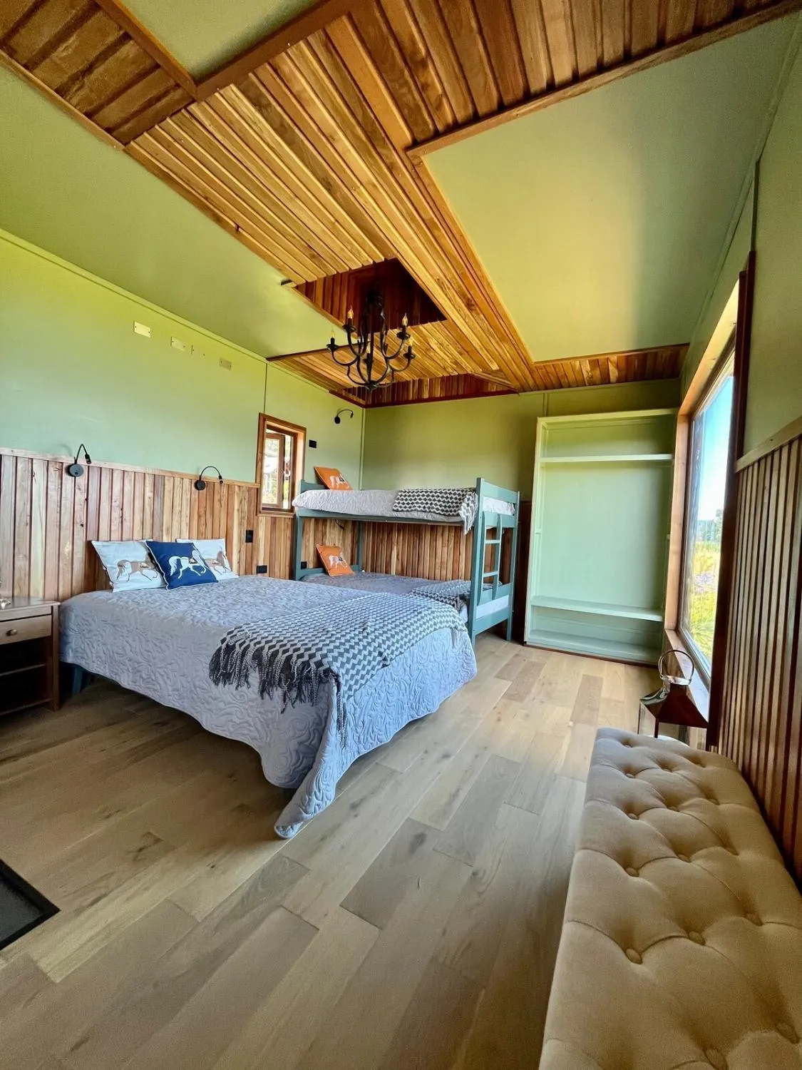 La cabaña es de uso exclusivo para 4 personas distribuidas en 2 dormitorios. Incluye cocina equipada con refrigerador, utensilios y vajilla; baño privado; ropa de cama y toallas; estacionamiento dentro del recinto; y WiFi estable para streaming y videollamadas. El espacio está pensado para que puedas llegar directamente sin hacer compras de insumos básicos.