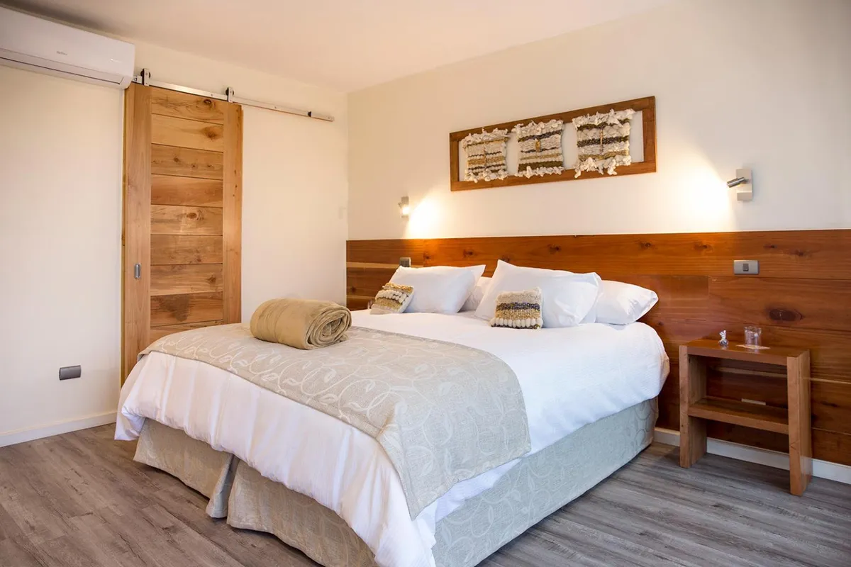 Hotel boutique en Uruguay 640, Pucón. Habitaciones para 4, balcón, desayuno excepcional. Mardones (10/10): "un poco más del centro pero tranquilo, perfecto". 76 mil CLP.