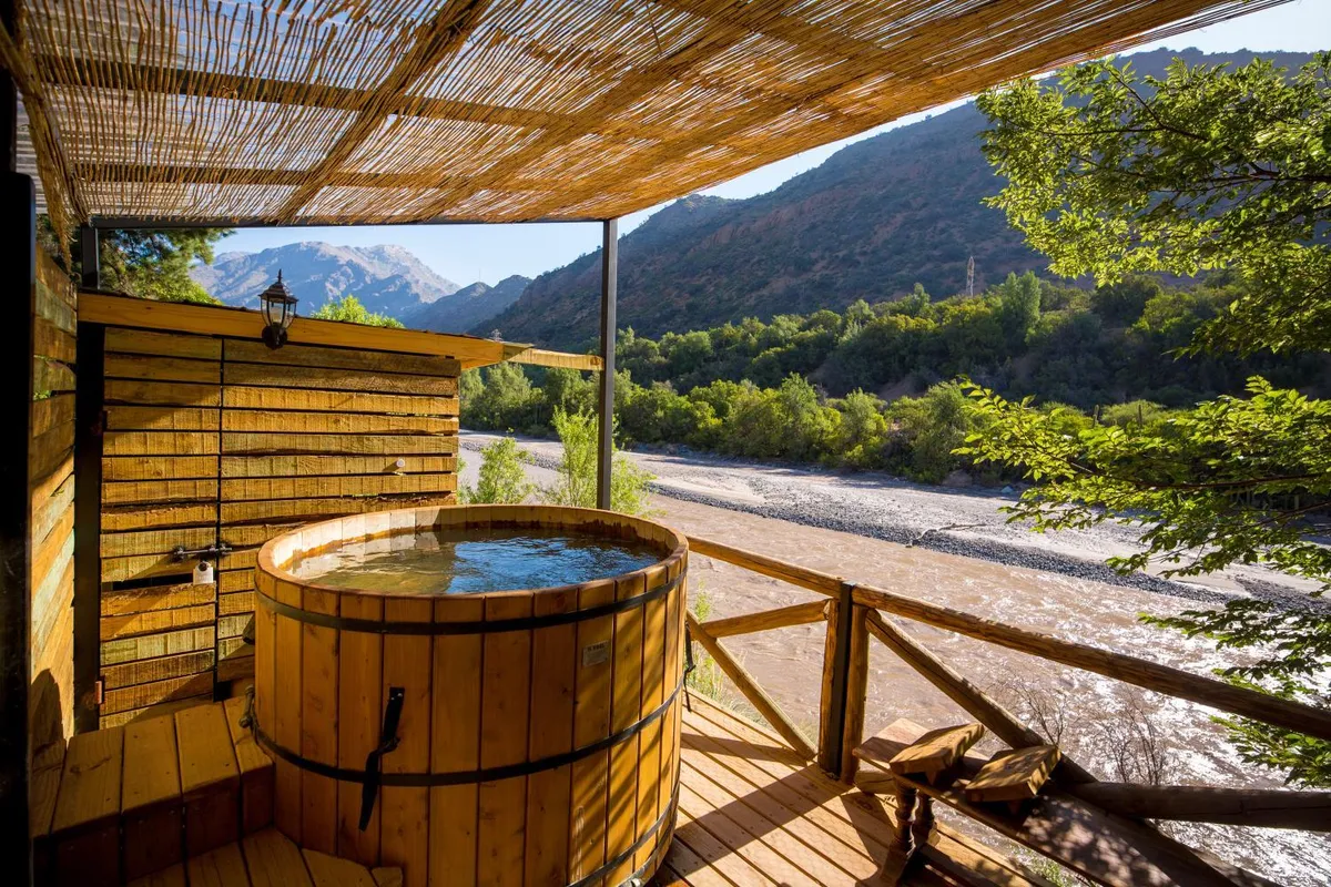 Lodge en Camino al Volcán 33595, San José de Maipo. Hot tub + piscina + chimenea al aire libre. A orillas del río Maipo. 9.2/10 con 332 reseñas.