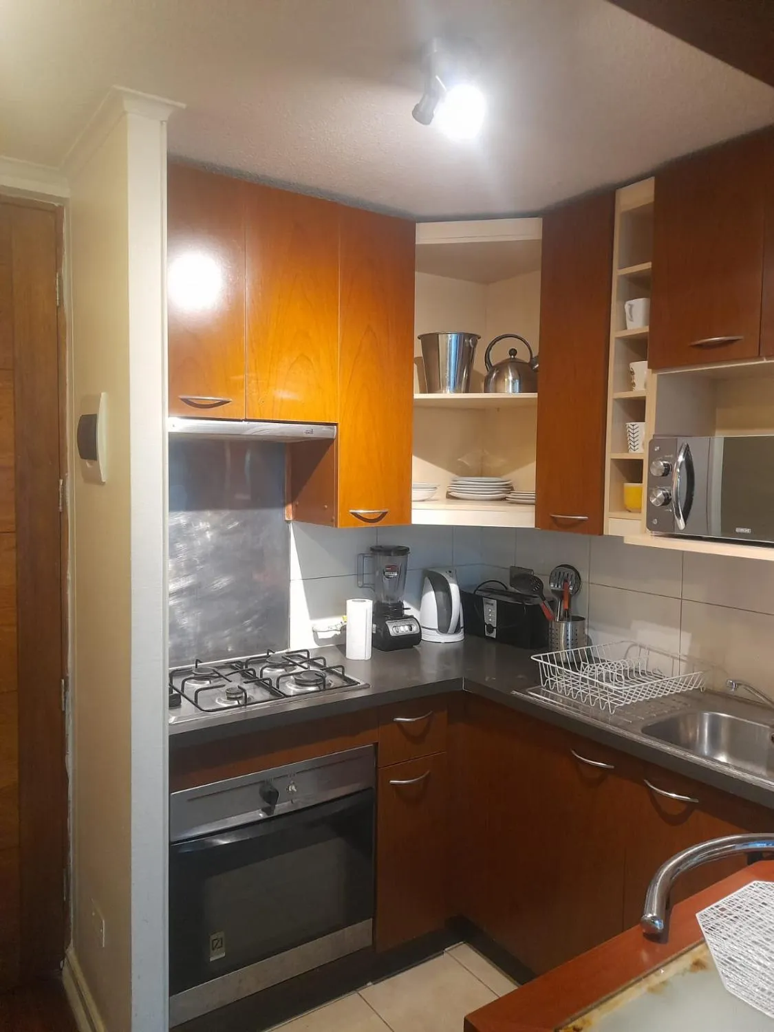 Buen depto para estadías cortas en Santiago. Cocina chica pero funcional, baño privado. El shuttle del aeropuerto ayudó en llegada de madrugada. La piscina estaba cerrada en mi visita de julio — conviene consultar temporada. Por lo demás, todo bien.