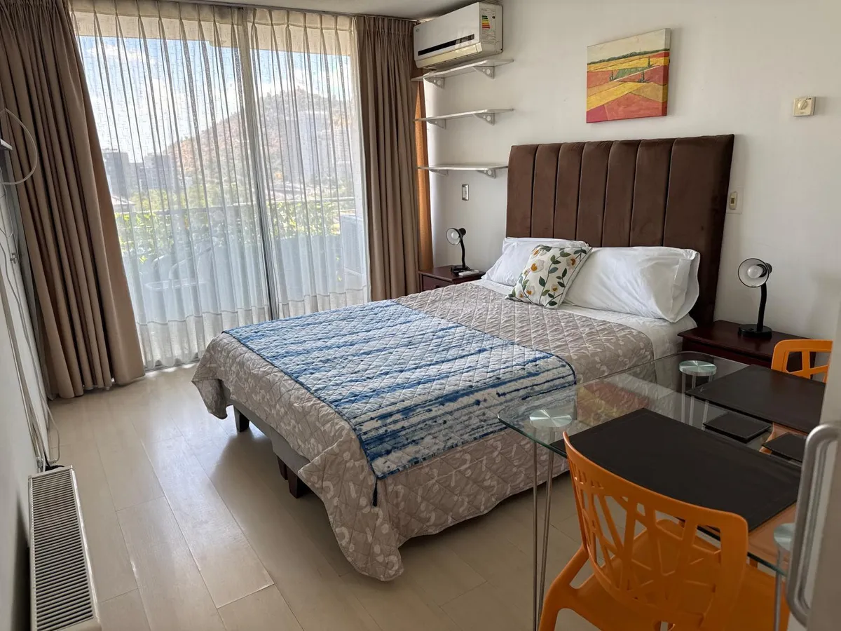 Muy buen departamento para unos días en Santiago. El A/C funcionó perfecto en enero. Rooftop pool para refrescar en la tarde. Balcón con algo de vista. Un detalle: 25 m² son 25 m² — si son 4 adultos grandes, evaluar otro más amplio.